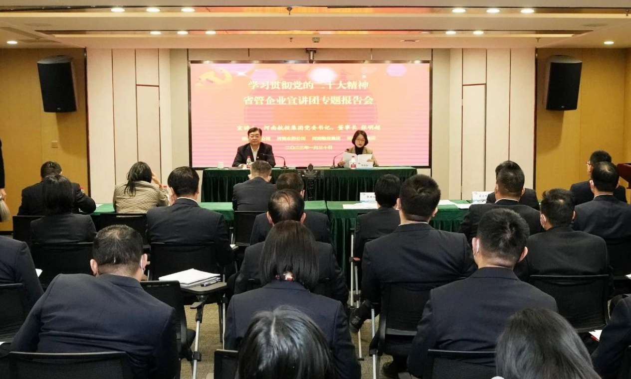 1月30日,按照省委和省政府國(guó)資委黨委統(tǒng)一安排部署,省管企業(yè)宣講團(tuán)成員,河南航投集團(tuán)黨委書記、董事長(zhǎng)張明超在航空經(jīng)濟(jì)服務(wù)中心宣講黨的二十大精神。專題報(bào)告會(huì)以線上線下相結(jié)合的方式召開,鄭州糧批、河南農(nóng)擔(dān)、河南糧投黨員干部及員工代表同時(shí)參會(huì)。河南航投集團(tuán)黨委副書記、工會(huì)主席郭艷紅主持會(huì)議,領(lǐng)導(dǎo)班子其他成員、中層管理人員及部分黨員代表現(xiàn)場(chǎng)參會(huì)。