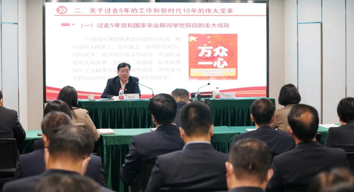 會(huì)上,張明超圍繞黨的二十大的主題和主要成果、過去5年的工作和新時(shí)代10年的偉大變革、馬克思主義中國(guó)化時(shí)代化、中國(guó)式現(xiàn)代化、全面建設(shè)社會(huì)主義現(xiàn)代化國(guó)家的目標(biāo)任務(wù)、堅(jiān)持黨的全面領(lǐng)導(dǎo)和全面從嚴(yán)治黨等方面,對(duì)黨的二十大精神進(jìn)行了系統(tǒng)宣講,并對(duì)學(xué)習(xí)領(lǐng)會(huì)習(xí)近平總書記視察延安和安陽(yáng)重要講話精神作了深入闡釋。