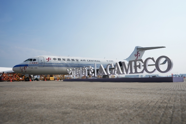 10月30日,中國(guó)商飛在廣州向河南航投集團(tuán)交付ARJ21客改貨飛機(jī)。作為啟動(dòng)用戶,這也是河南航投收到的首架ARJ21客改貨飛機(jī)。中國(guó)商飛黨委書(shū)記、董事長(zhǎng)賀東風(fēng)向集團(tuán)黨委書(shū)記、董事長(zhǎng)張明超移交交付紀(jì)念鑰匙。中國(guó)商飛黨委副書(shū)記、董事譚萬(wàn)庚,中原龍浩航空董事長(zhǎng)郭建業(yè)等致辭,中國(guó)商飛黨委常委、副總經(jīng)理、總會(huì)計(jì)師吳永良向河南航投租賃頒發(fā)飛機(jī)銷售證,民航中南局副局長(zhǎng)陳維向中原龍浩航空頒發(fā)單機(jī)適航證、國(guó)籍登記證、無(wú)線電臺(tái)證。中國(guó)商飛黨委常委、副總經(jīng)理張玉金主持儀式。