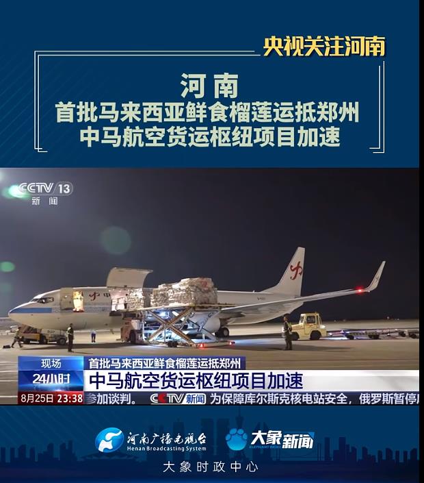 大象新聞客戶(hù)端 | 【央視關(guān)注河南】首批馬來(lái)西亞鮮食榴蓮運(yùn)抵鄭州