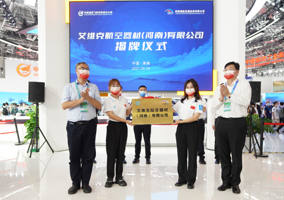 9月29日,艾維克航空器材(河南)有限公司(以下簡(jiǎn)稱艾維克河南公司)揭牌儀式在珠海第十三屆中國(guó)國(guó)際航空航天博覽會(huì)現(xiàn)場(chǎng)舉行。河南民航發(fā)展投資有限公司(以下簡(jiǎn)稱河南航投)黨委書記、董事長(zhǎng)張明超,中航通用飛機(jī)有限責(zé)任公司(以下簡(jiǎn)稱航空工業(yè)通飛)黨委書記、董事長(zhǎng)白小剛共同揭牌。河南省發(fā)展改革委副主任李迎偉出席儀式,河南航投副總經(jīng)理謝亞偉及相關(guān)業(yè)務(wù)負(fù)責(zé)人參加。