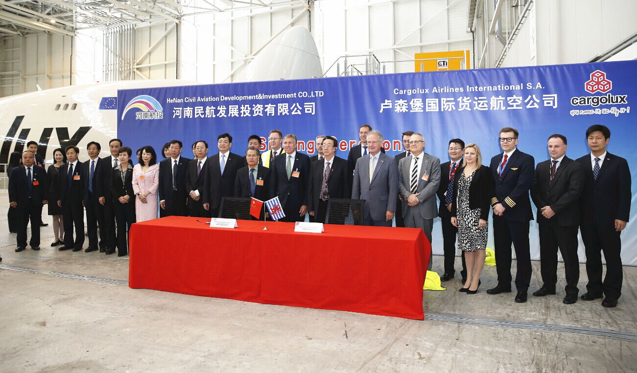 河南航投與盧森堡貨航簽署成立合資貨運航空公司及飛機維修公司協(xié)議