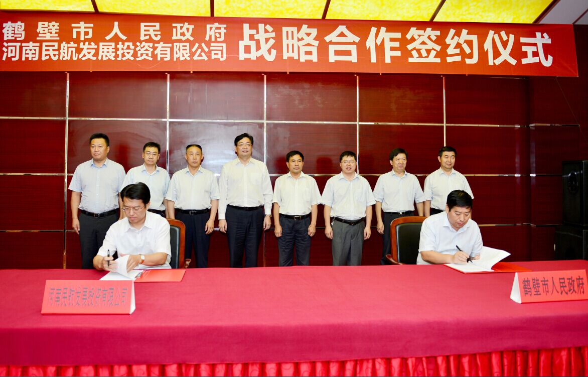 唐遠(yuǎn)游在致辭中介紹了鶴壁市基本情況和近年來(lái)的發(fā)展。他表示,鶴壁市發(fā)展環(huán)境優(yōu)良,地處中原經(jīng)濟(jì)區(qū)連接環(huán)渤海經(jīng)濟(jì)圈的前沿,呈現(xiàn)鐵路和高速公路雙十字的交通格局,區(qū)位交通優(yōu)勢(shì)突出。鶴壁海關(guān)、出入境檢驗(yàn)檢疫局等口岸建成運(yùn)行,正在申建綜合保稅區(qū),一些知名的外向型企業(yè)紛紛入駐,對(duì)外貿(mào)易蓬勃發(fā)展。今天簽署戰(zhàn)略合作協(xié)議,對(duì)雙方優(yōu)勢(shì)互補(bǔ),實(shí)現(xiàn)共贏意義重大,鶴壁市委市政府將努力提供一流服務(wù),創(chuàng)造一流環(huán)境,大力支持河南航投在鶴壁的發(fā)展。
